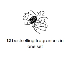 The set includes TOP 12 scents: Dore, Infinity Flow, Blue Nightingale, Inoop, Old Million, Majesty, Ohena, By Design, Black Grapes, Moroco, Curious Crafts, Staying Alive.