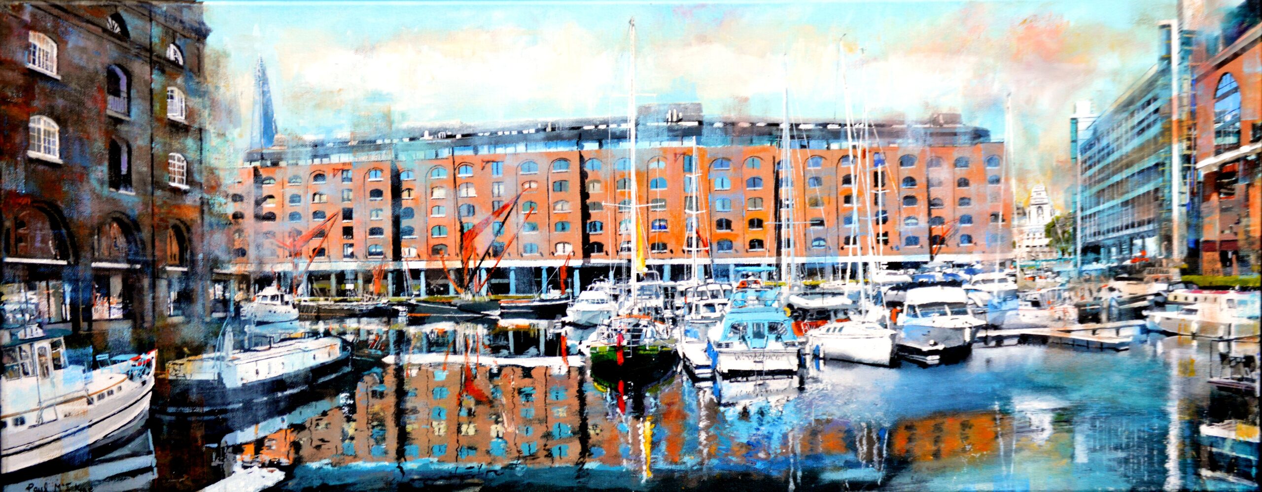 Painting with an uninhibited vigour and freedom, Paul McIntyre‘s paintings vibrate with life, energy and colour. Whilst studying art at Henley College, he was introduced to acrylic paints and has enjoyed working with this medium for many years. Depicting a radiant world of cityscapes, street signs, traffic and people make his work both instantly recognisable and utterly irresistible.